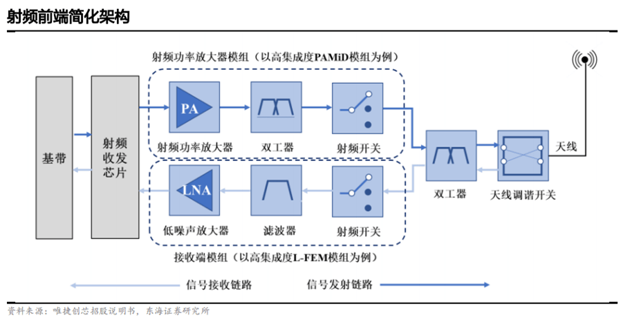 2、射頻前端可分為發(fā)射鏈路(TX)和接收鏈路(RX)