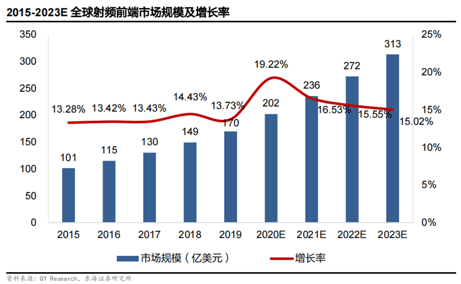2、射頻前端市場(chǎng)規(guī)模