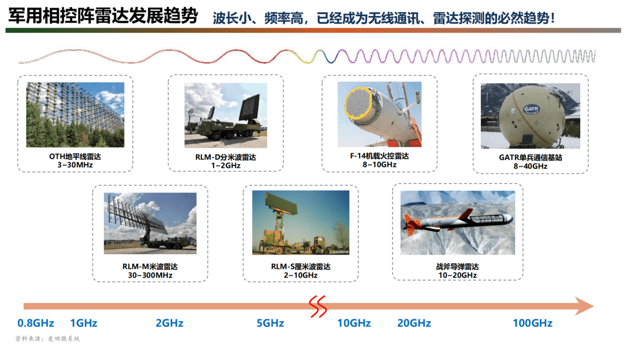 4、相控陣?yán)走_(dá)TR組件:波長減小、頻率提高成趨勢(shì)